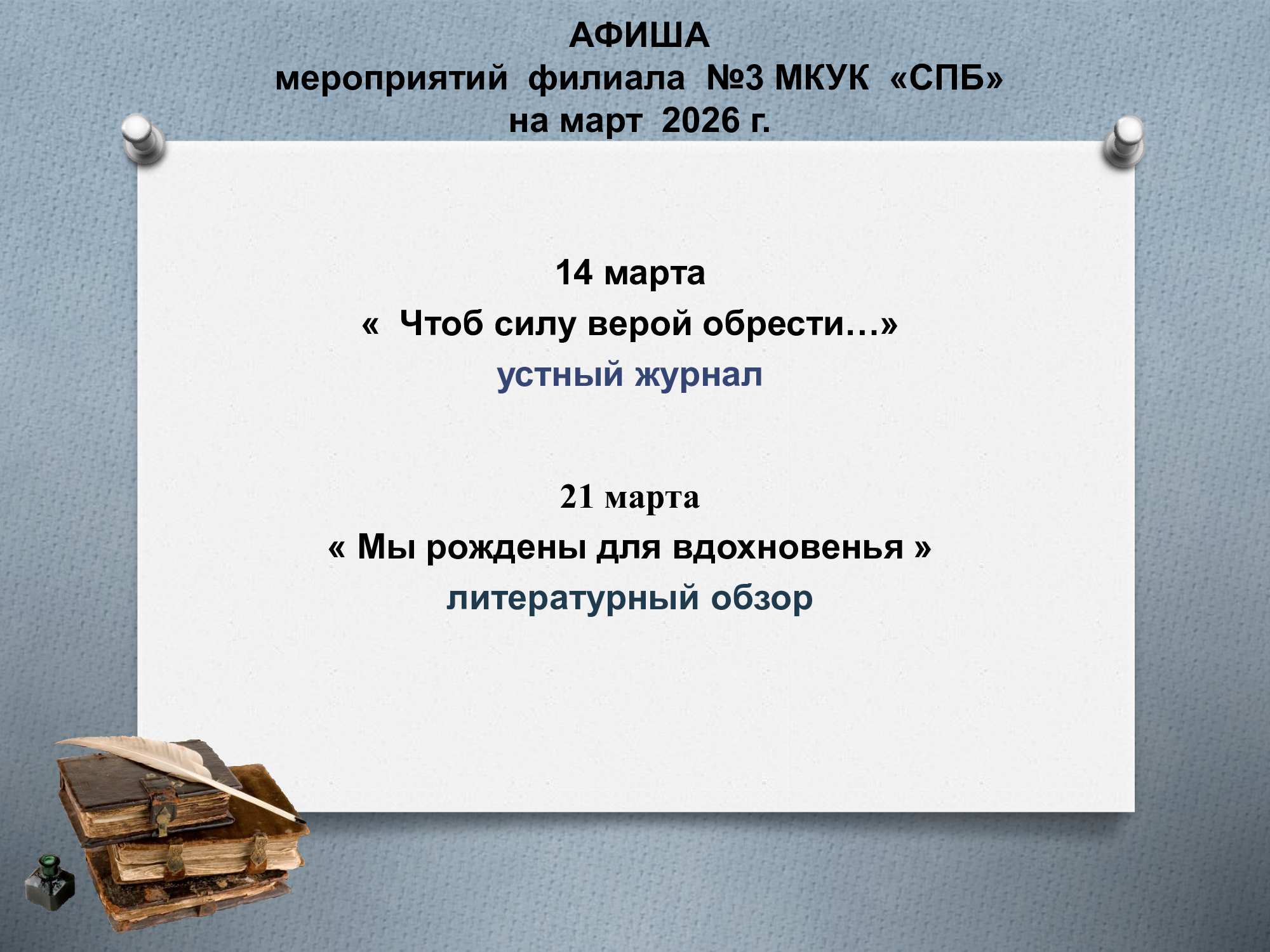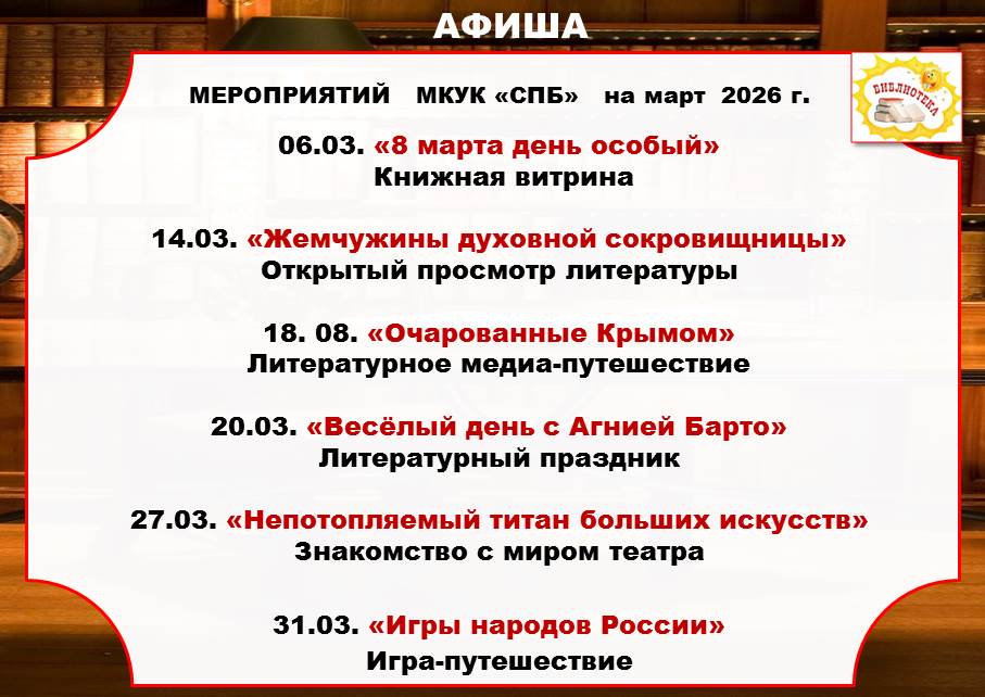 страницы предлагаем вашему вниманию афишу мероприятий МКУК