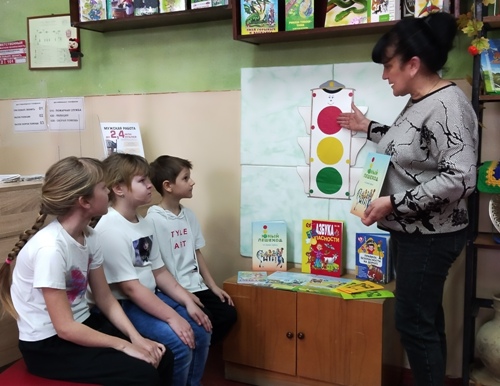 для юных читателей библиотеки пятиминутку безопасности «Веселый светофор».